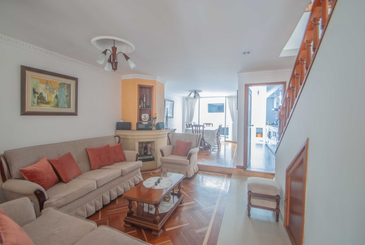 Hermosa casa bifamiliar en perfecto estado, ubicada en el exclusivo barrio Cedro Golf, con 134,80 m² construidos. Ofrece amplios y luminosos espacios, ideal para disfrutar en familia. En el primer nivel, cuenta con parqueadero para 4 carros, acogedora sala con chimenea, comedor independiente, baño social, cocina integral a gas, zona de lavandería y un patio cubierto. El segundo nivel ofrece tres cómodas habitaciones (dos con closet y la principal con walking closet), dos baños, estudio y hall de habitaciones. Ubicación estratégica, con excelentes vías de acceso por la Carrera 7 y Calle 147. ¡Oportunidad perfecta para vivir o invertir en una de las zonas más exclusivas!